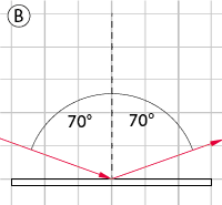 c Die Aussage von Thea ist falsch. Der Winkel zwischen dem einfallenden und reflektierten Lichtstrahl ergibt sich aus der Summe aus Einfallwinkel und Reflexionswinkel. Da Einfalls- und Reflexionswinkel gleich groß sind, ist der gesuchte Winkel immer doppelt so groß wie der Einfallswinkel. Nur wenn der Einfallswinkel 45° beträgt, ist der Winkel zwischen dem einfallenden und reflektierten Lichtstrahl 90°, denn 45° + 45° = 90°.