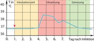 d Inkubationszeit, Erkrankung und Genesung