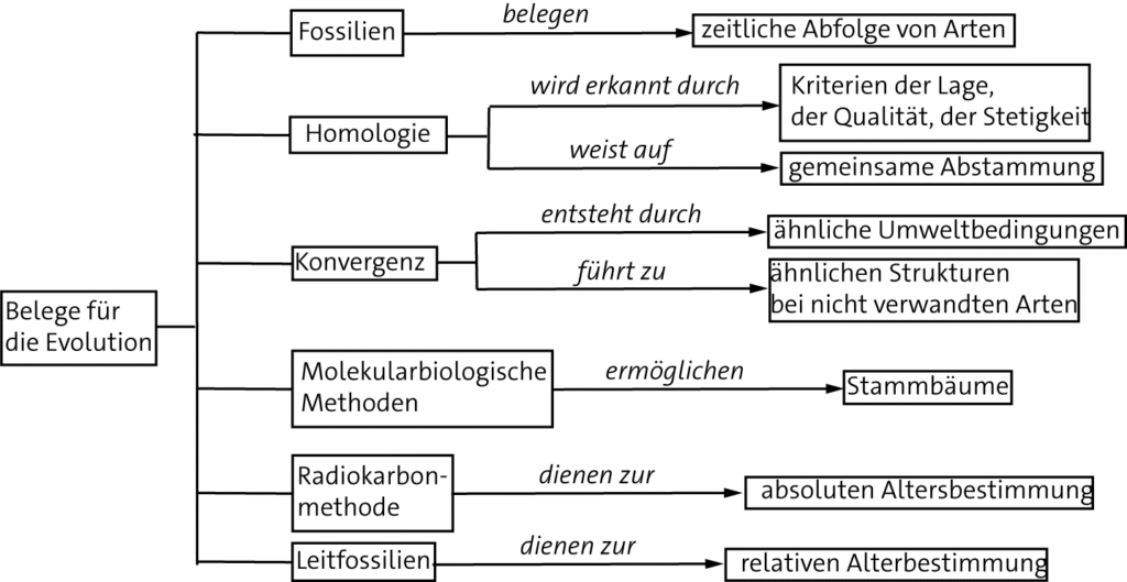 Beispiel einer Concept-Map zum Thema „belege für die Evolution“: