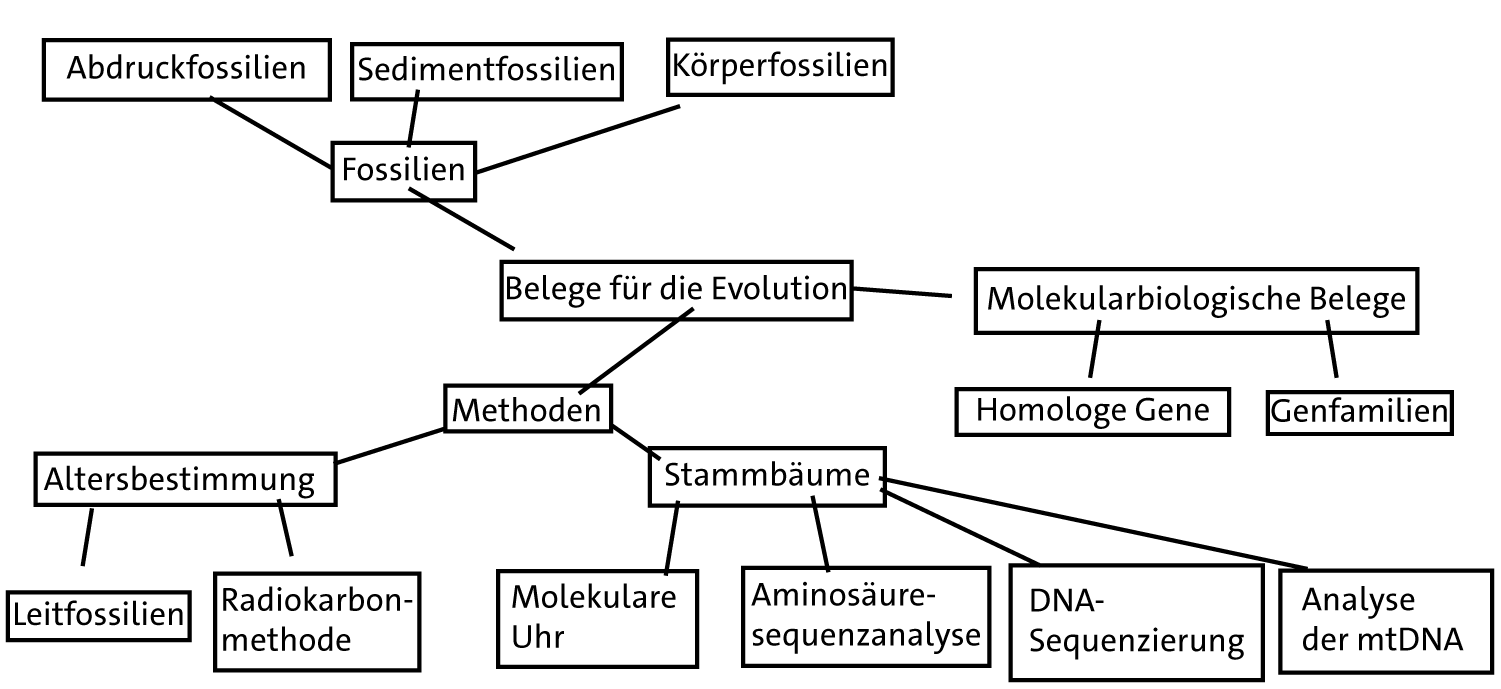 Beispiel einer Mind-Map zum Thema „Belege für die Evolution“: