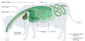 c Beschreibe den Weg der Nahrung anhand eines Flussdiagramms. Nutze für den Weg der groben Nahrung und den Weg der feinen Nahrung unterschiedliche Farben. Der Text und Bild 3 helfen dir dabei.